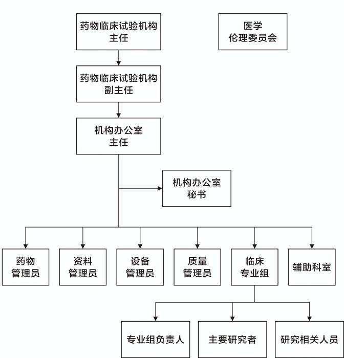 医院院长何丽芬担任机构负责人,设立临床试验机构办公室(简称机构办)作为独立的药物临床试验管理部门,制定立项、启动、试验中到结题全流程的质量管理体系。机构办设办公室主任1人、秘书2人、质控员1人、药物管理员2人、资料管理员2人。
