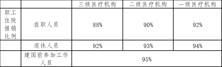 2、支付比例:在职参保人员普通门诊政策范围内费用统筹基金支付比例:一级及以下定点医疗机构 60%,二级定点医疗机构 55%,三级定点医疗机构 50%。退休参保人员支付比例在此基础上提高 5%。
