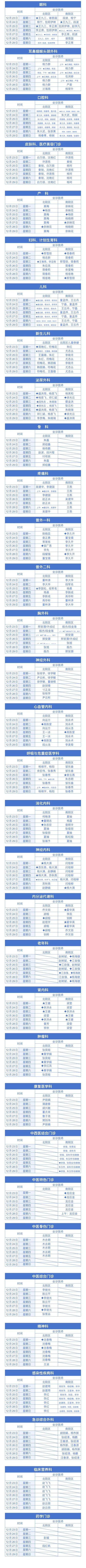 开设午间、夜间门诊。胸外科、神经外科、肾内科、精神科门诊午间门诊(12:00—14:30)不开诊,其余所有门诊科室均开诊