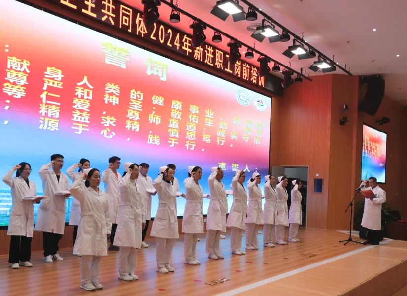 在宣誓仪式上,新员工们庄严宣誓,承诺将遵守职业道德规范,为患者提供优质的医疗服务。