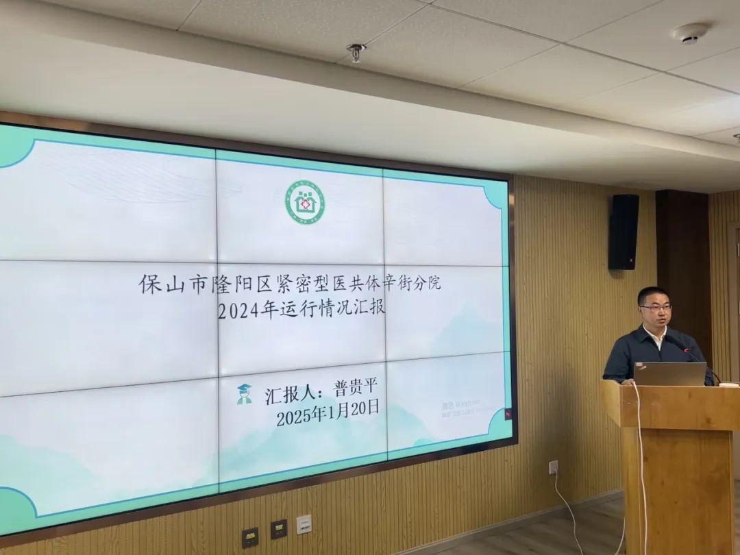 隆阳区妇幼保健院、潞江分院、西邑分院、辛街分院、板桥分院、青华分院6家分院就2024年整体业务运行和年度医共体重点工作开展情况,通过数据对比、案例分析等方式进行汇报分析。