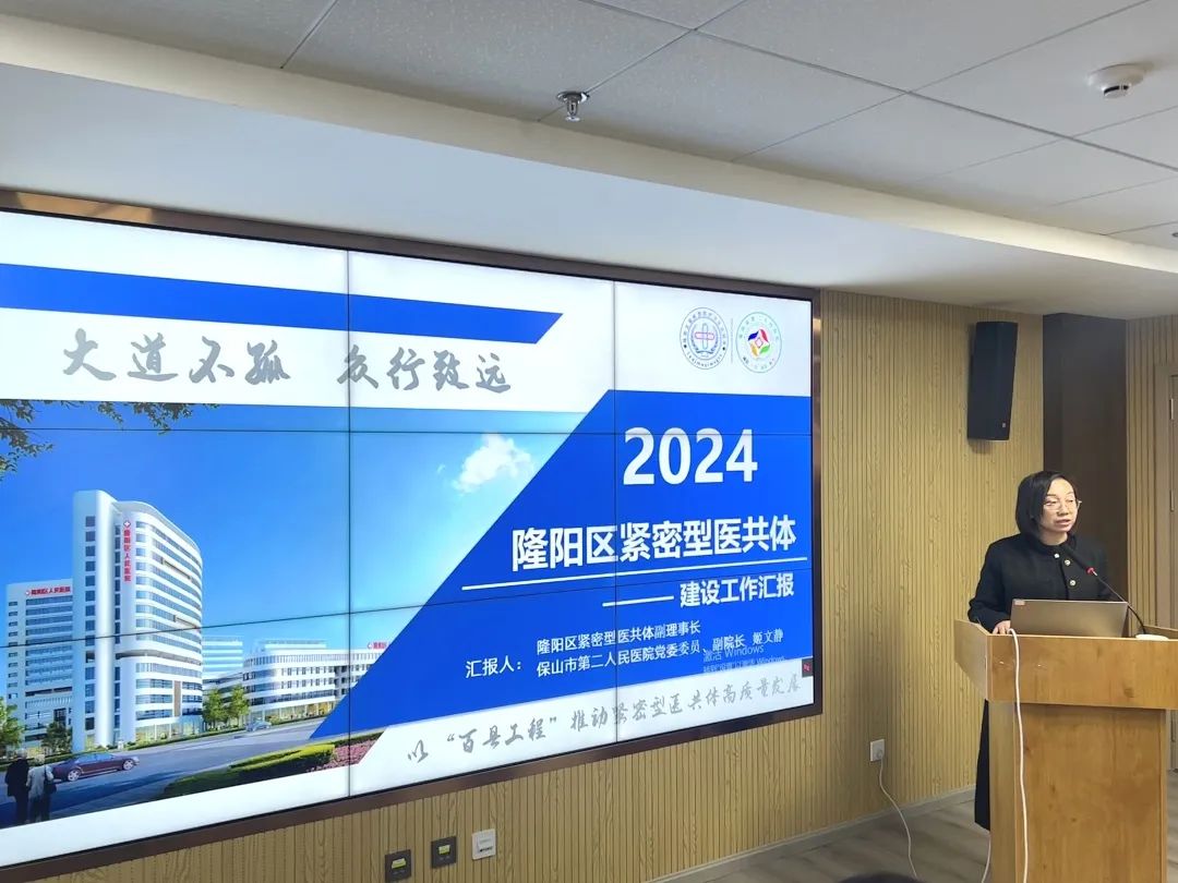 隆阳区医共体副理事长、总院党委委员、副院长姬文静作隆阳区紧密型医共体运行分析汇报。