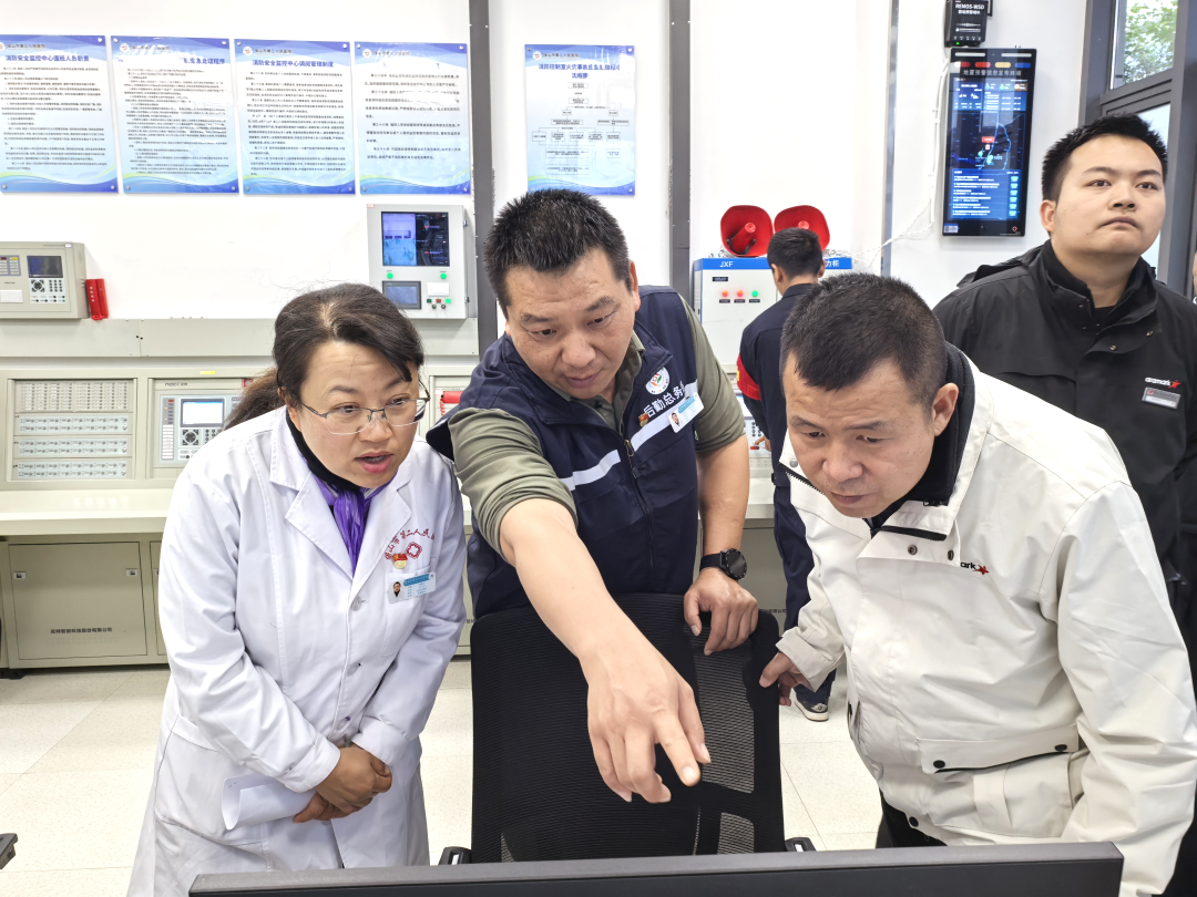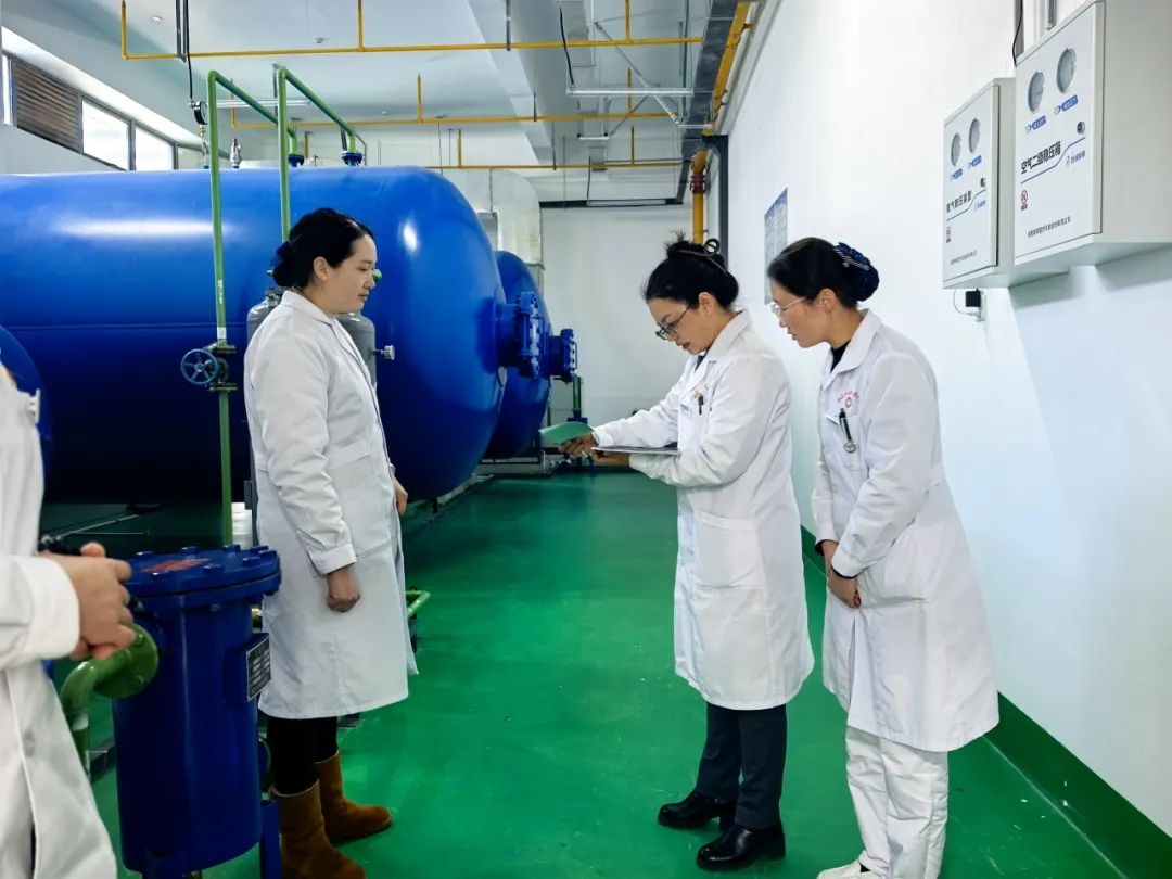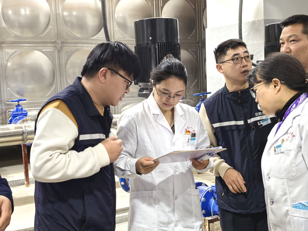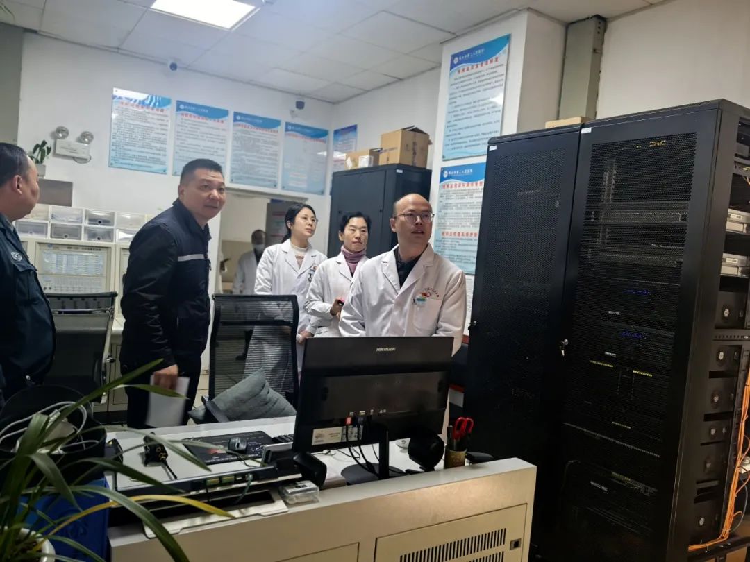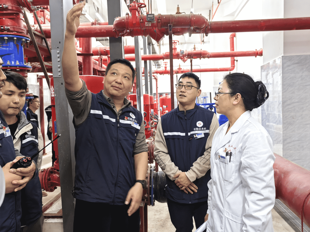 本次检查范围广泛,涵盖消防安全、水电燃气安全、特种设备、食品安全、危化品管理、库房物资、通用设备等领域。检查组先后实地查看了各院区配电室、发电机房、液氧站、医废暂存间、污水处理中心、消防安全监控中心、微型消防站、电梯机房各重点科室等重点部位。
