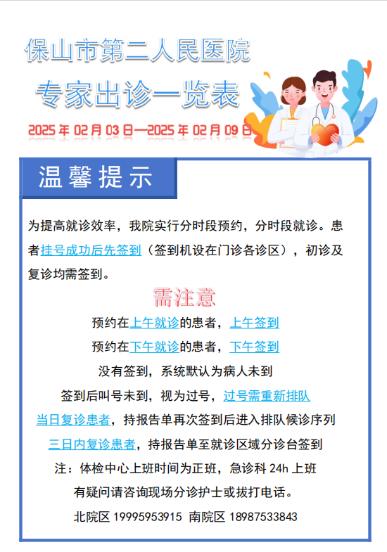 必收藏丨保山二院新、老院区2月3日—2月9日门诊出诊表