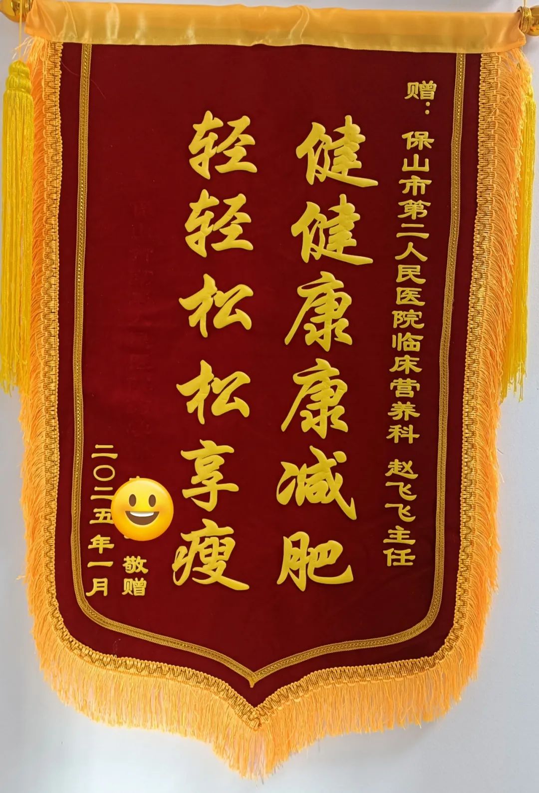 减肥成功后,小梦亲手将“轻轻松松减肥,健健康康“享瘦”的锦旗送到我院减重门诊医生手中。临床营养科医生表示:被选择是一种信任,被认可是一种幸福,做一名有温度的营养医生,用实际行动践行医者誓言。用责任心、信心、爱心、细心、诚心给与患者安慰、鼓励、治愈,帮助他们度过人生中的低谷与重要时刻。