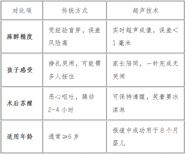用药更少:仅需微量局麻药即可阻断疼痛信号,减少药物全身副作用,尤其适合低龄患儿(如3岁以下儿童)。
