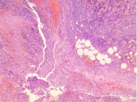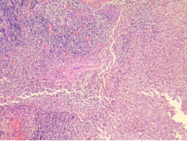 常为化脓性阑尾炎继续发展的结果,由于系膜炎症使阑尾静脉血栓形成,从而引起阑尾广泛出血梗死,阑尾各层广泛出血坏死和急性炎细胞浸润。肌层出血坏死严重者可引起穿孔。