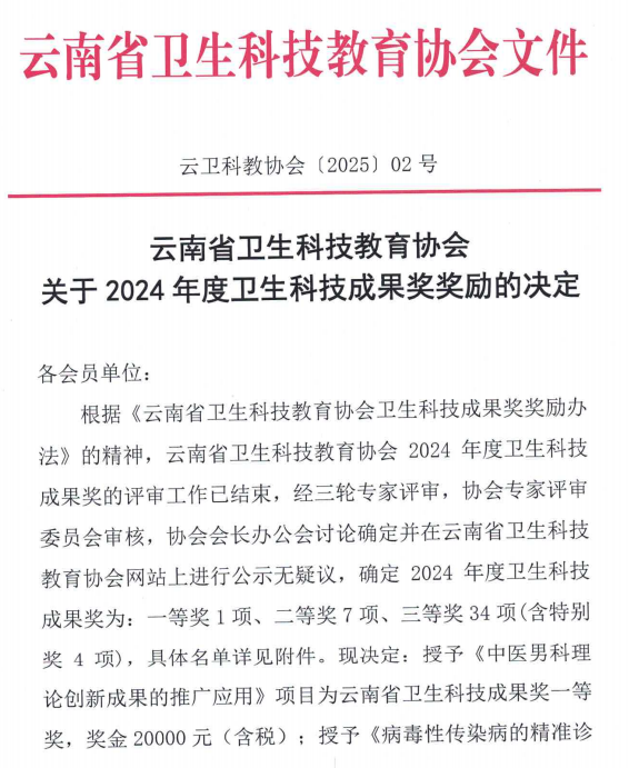 喜讯丨泌尿外科团队荣获云南省卫生科技成果奖三等奖