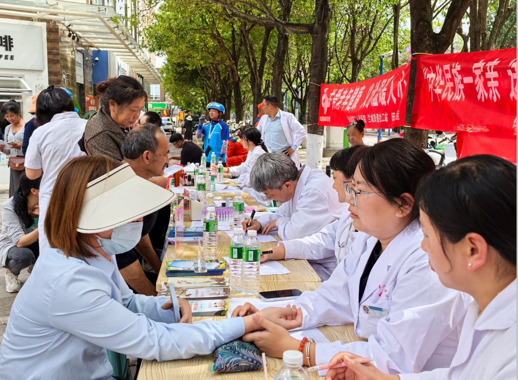 5月9日,保山市第二人民医院第一党支部联合田心社区,以“中华民族一家亲,送医下乡助健康”为主题,共同开展“关爱老年健康 义诊温暖人心”义诊活动。党员医护先锋队带头下沉基层,将优质医疗服务送到多民族群众“家门口”,绘就了一幅“党旗引领、民族团结、健康同行”的暖心画卷。