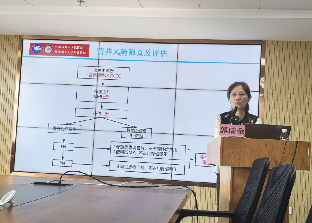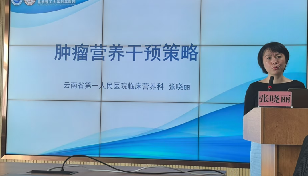 5月10日当天由云南省第一人民医院营养科主任郭瑞金、主治医生张晓丽分别进行《规范病案首页中营养诊断的撰写》、《肿瘤患者的营养支持》专题授课,医院各科室主任、护士长、骨干参加了学习,推动临床营养标准化建设。