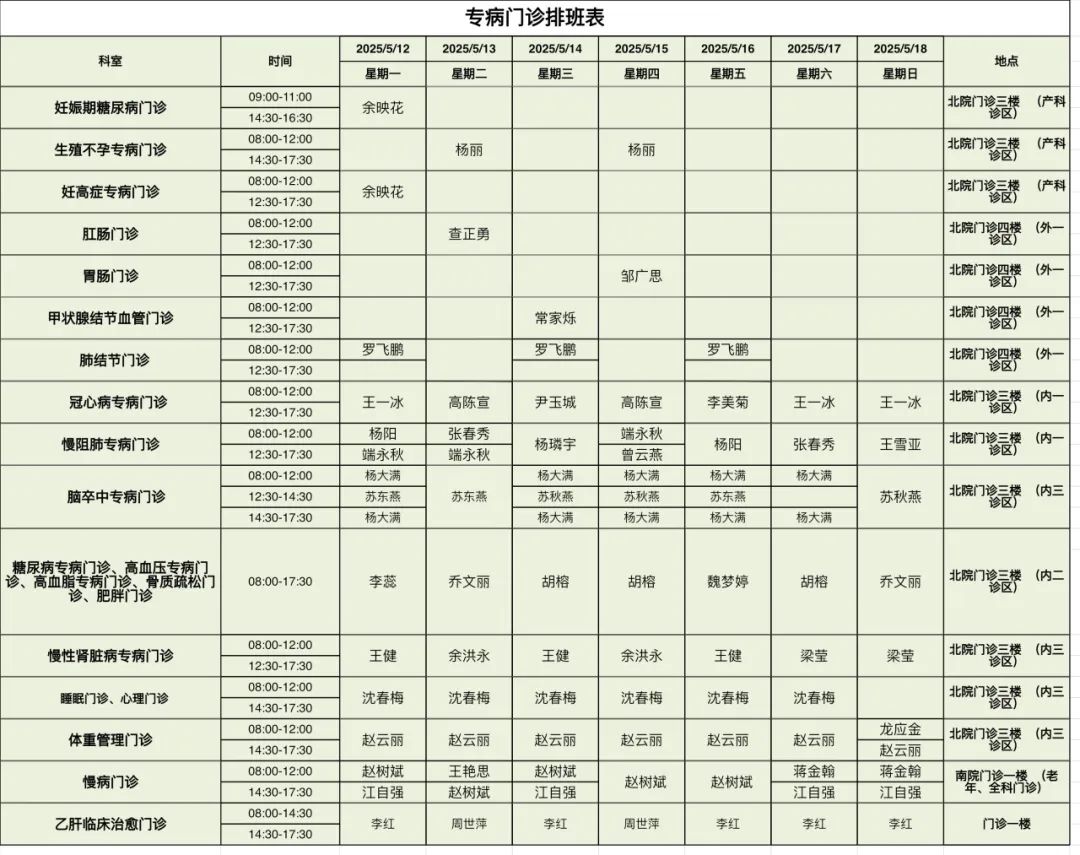 必收藏︱保山市二院新、老院区5月12日—5月18日门诊出诊表