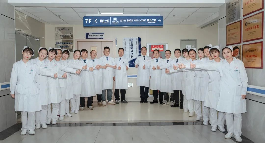 患者金大爷,因梗阻性黄疸到我院就诊收住消化内科,完善相关检查后发现胆管占位性病变 ,胆总管下段壁稍增厚,低位胆道梗阻待鉴别;腹腔内及腹膜后淋巴结增多部分稍增大;肝脏多发囊性病变待排;胆囊稍肿大并胆汁浓缩。经院内会诊后,患者转入普外二科继续下一步治疗。我院普外二科主任李国松向患者及家属详细讲解病情的复杂性和手术的必要性,在排外手术禁忌后,拟定了高难度的手术方案——腹腔镜下胰十二指肠切除术+肝病损切除术+胆囊切除术。 在做好充分术前准备的基础上,普外二科手术团队披上“绿战袍”,向腹部手术的“珠穆朗玛峰”发起挑战。
