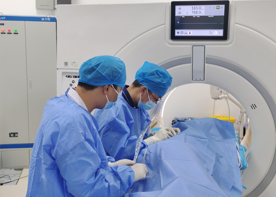 手术在CT精准引导下进行,医生操作氩气刀精准穿刺至肿瘤部位,利用氩气将病变组织冷冻至-140℃至-170℃,随后通过氦气恢复温度,在200℃左右的巨大温差下,肿瘤细胞迅速破裂、崩解。整个手术过程顺利,仅留下微小创口。