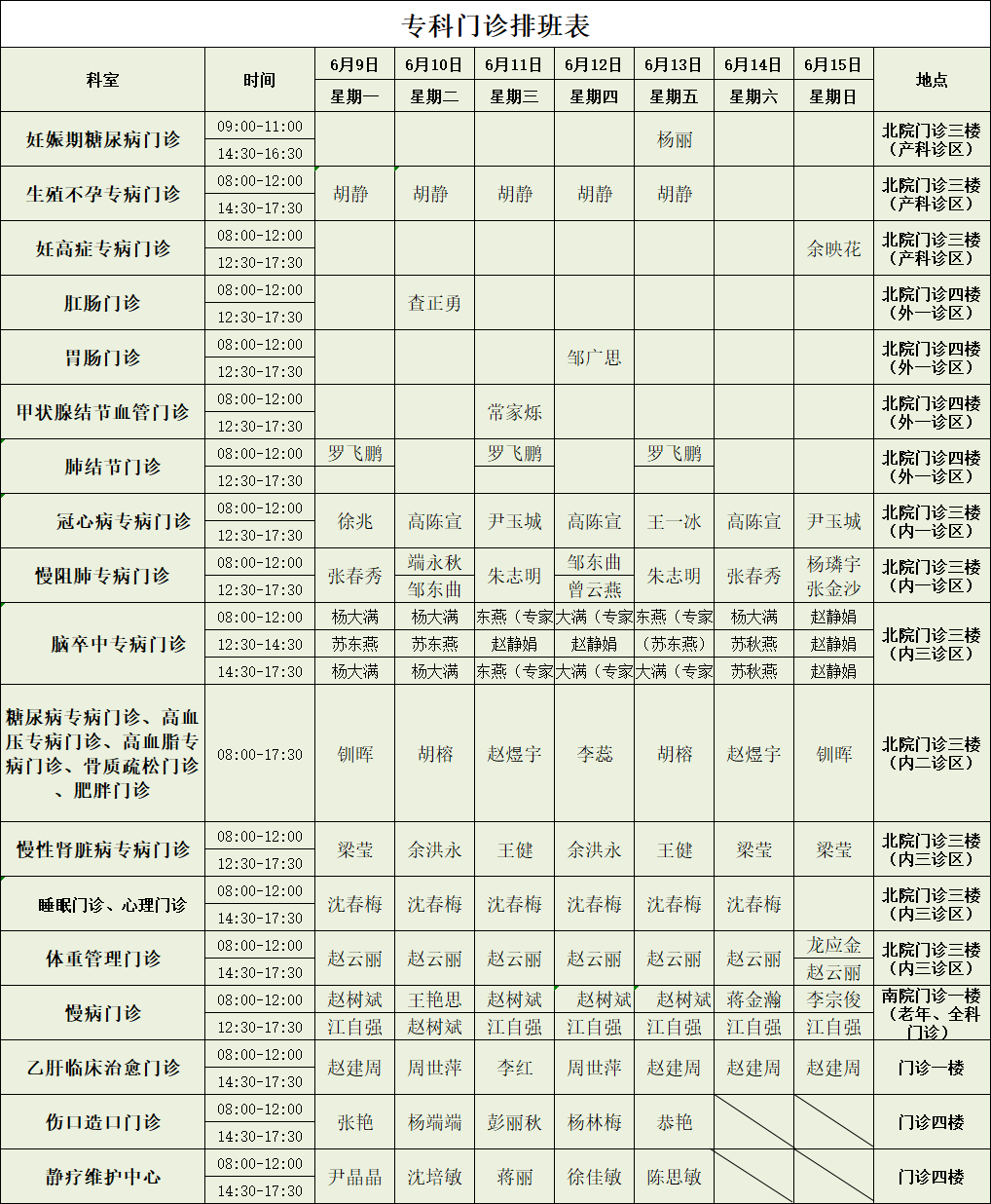 2.北院区除感染性疾病科,中医科,精神科门诊,耳鼻咽喉头颈外科午间门诊停诊外,其余科室均开展午间门诊;北院区暂未开展夜间门诊。