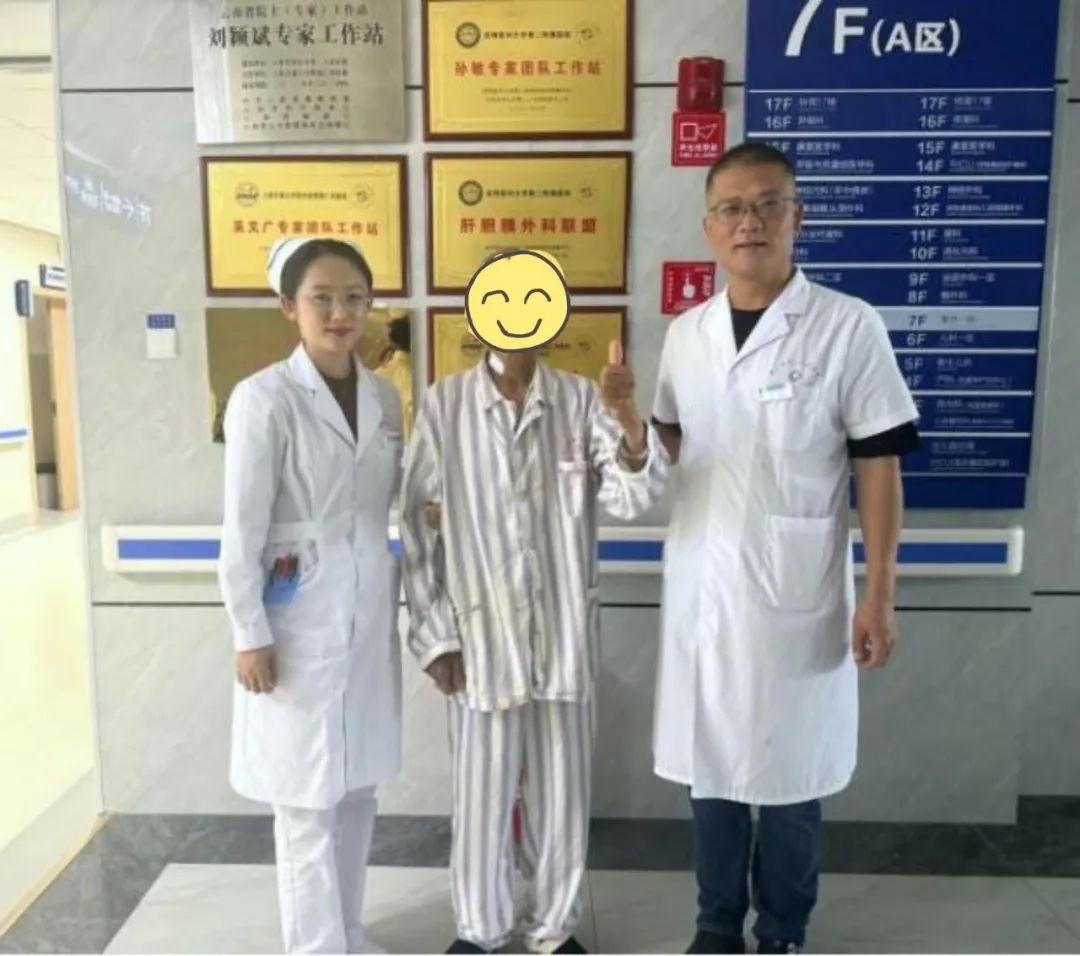 在MDT团队的共同努力和家属的悉心陪伴下,老人以超乎预期的速度康复:术后第4天可自行下床活动,第5天拔除引流管,第6天恢复良好饮食,精神状态日益好转。术后仅第12天,经全面评估,老人各项指标恢复良好,符合出院标准,在家属的陪同下康复出院。