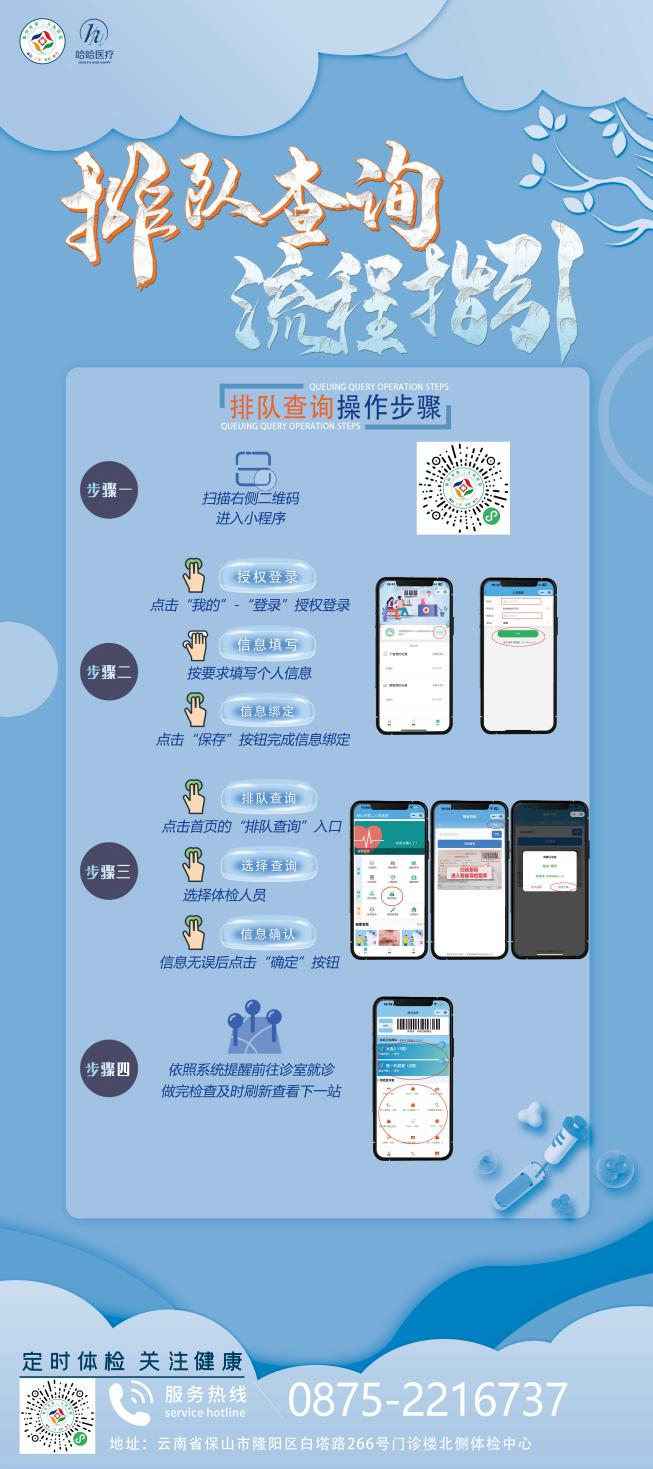 2.查询排队:首页进入“排队查询” → 选择体检人员 → 确认信息。