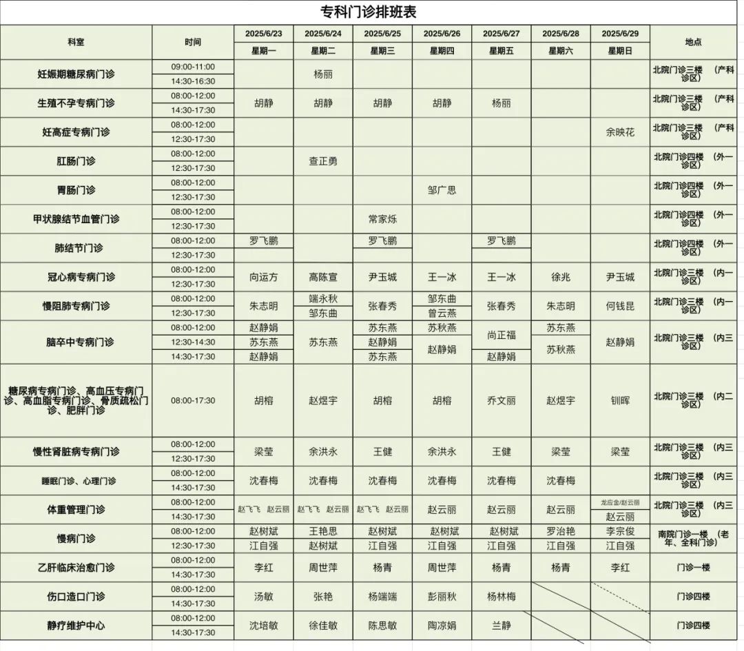 必收藏︱保山市二院新、老院区6月23日—6月29日门诊出诊表
