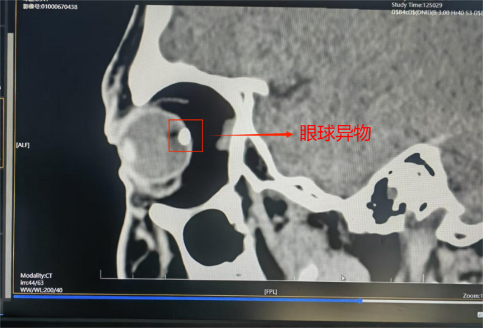 入院后裂隙灯显微镜下检查:结膜充血如浸染的晚霞,前房积血遮蔽了大半视野,左眼鼻侧角膜可见长约3.0mm角膜裂伤,伤口闭合,对应虹膜可见伤口,虹膜周围见少量晶状体皮质,左眼眼底模糊不清;我院眼B超示:左眼玻璃体混浊,眼内异物,64排以上[眼眶平扫+三维重建MPR]:左眼球形态尚可,眼球左后壁区见结节状高密度影,大小约0.6X0.3cm,提示左眼球异物——这是随时可能致盲的"定时炸弹"。球内异物存留每多一秒,感染、铁锈沉着症、视网膜脱离的风险就成倍增加。