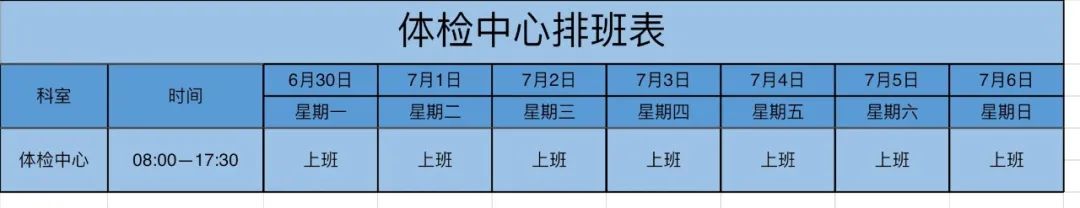 体检中心排班表