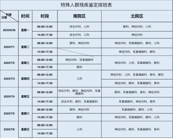 特殊人群残疾鉴定排班表