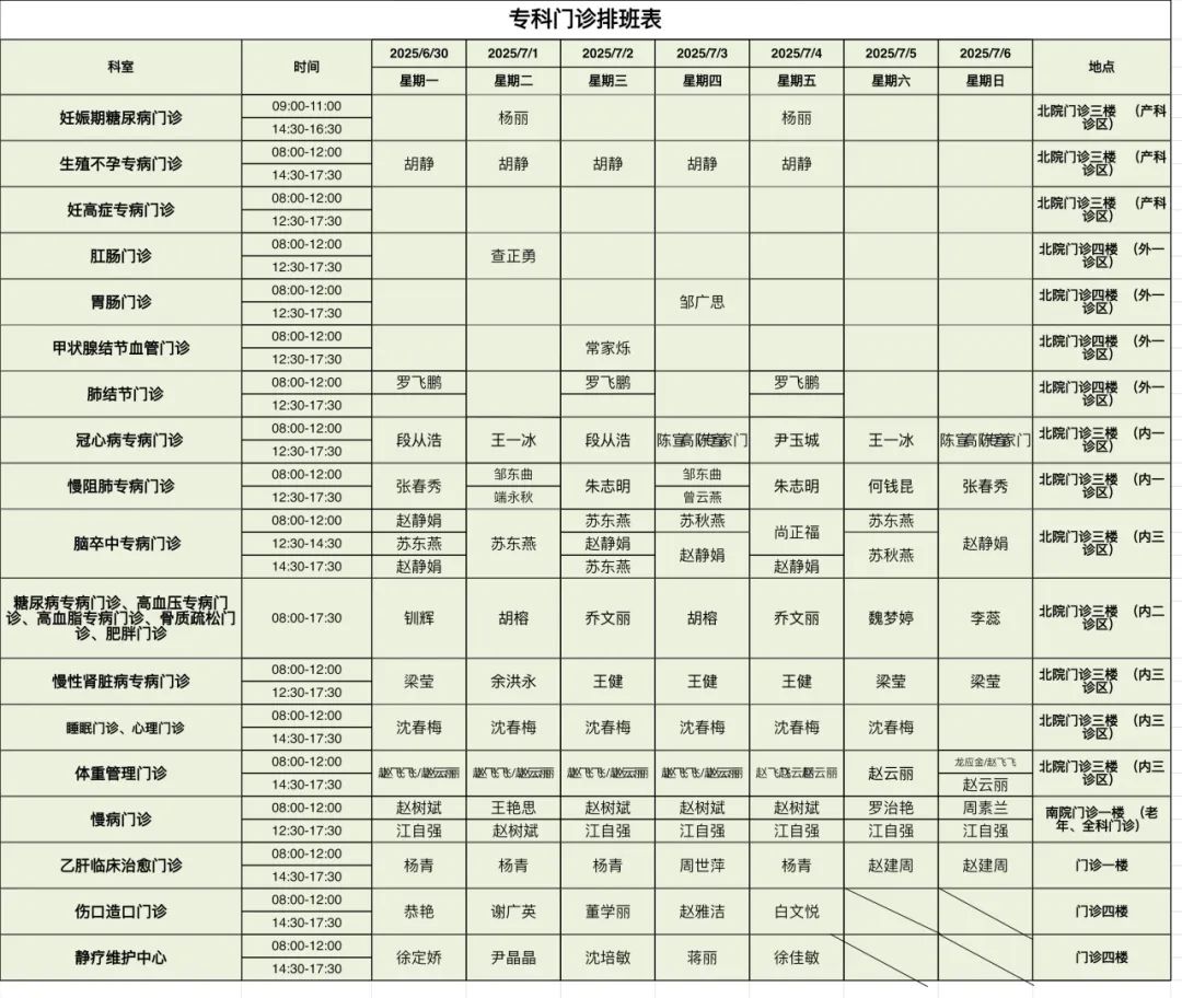 必收藏︱保山市二院新、老院区6月30日—7月6日门诊出诊表