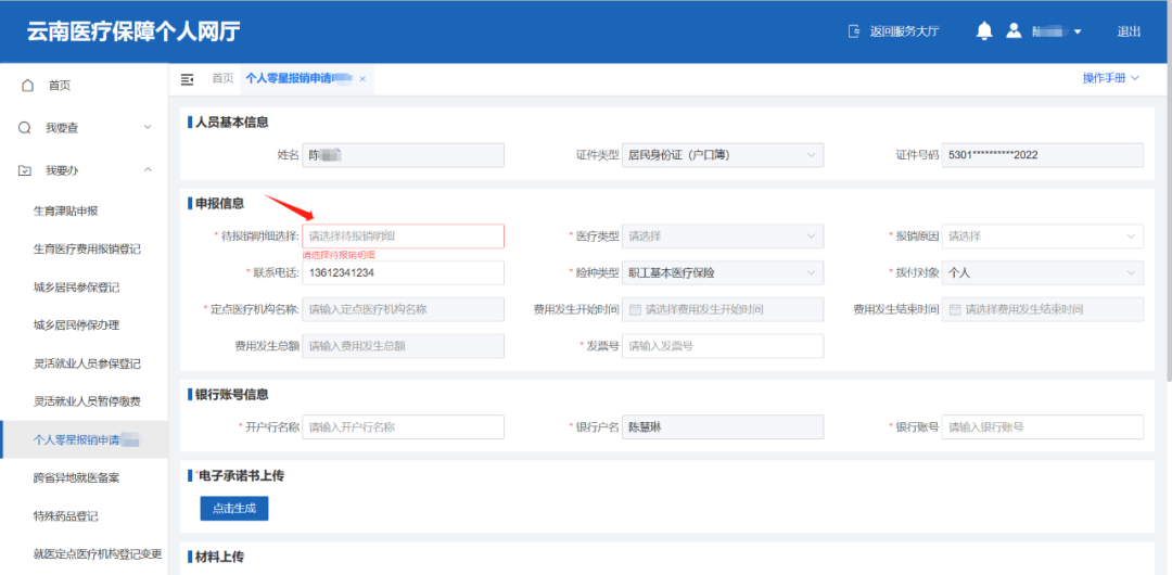 目前,异地就医医疗费用已在定点医药机构直接结算,因故未能直接结算的省内就医个人垫付医疗费用报销,可通过云南医保小程序或云南医保网厅线上申请办理,操作流程如下: