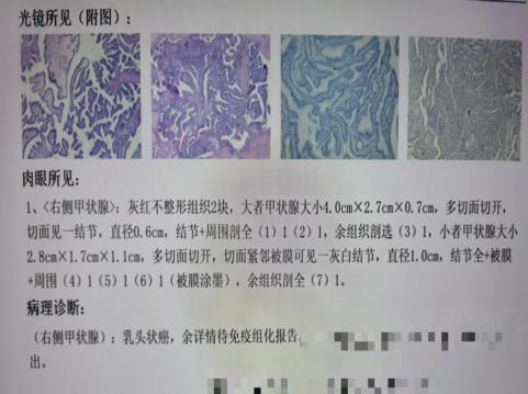 结合患者超声、病理检查、甲状腺功能综合评估,初步考虑为甲状腺恶性肿瘤。