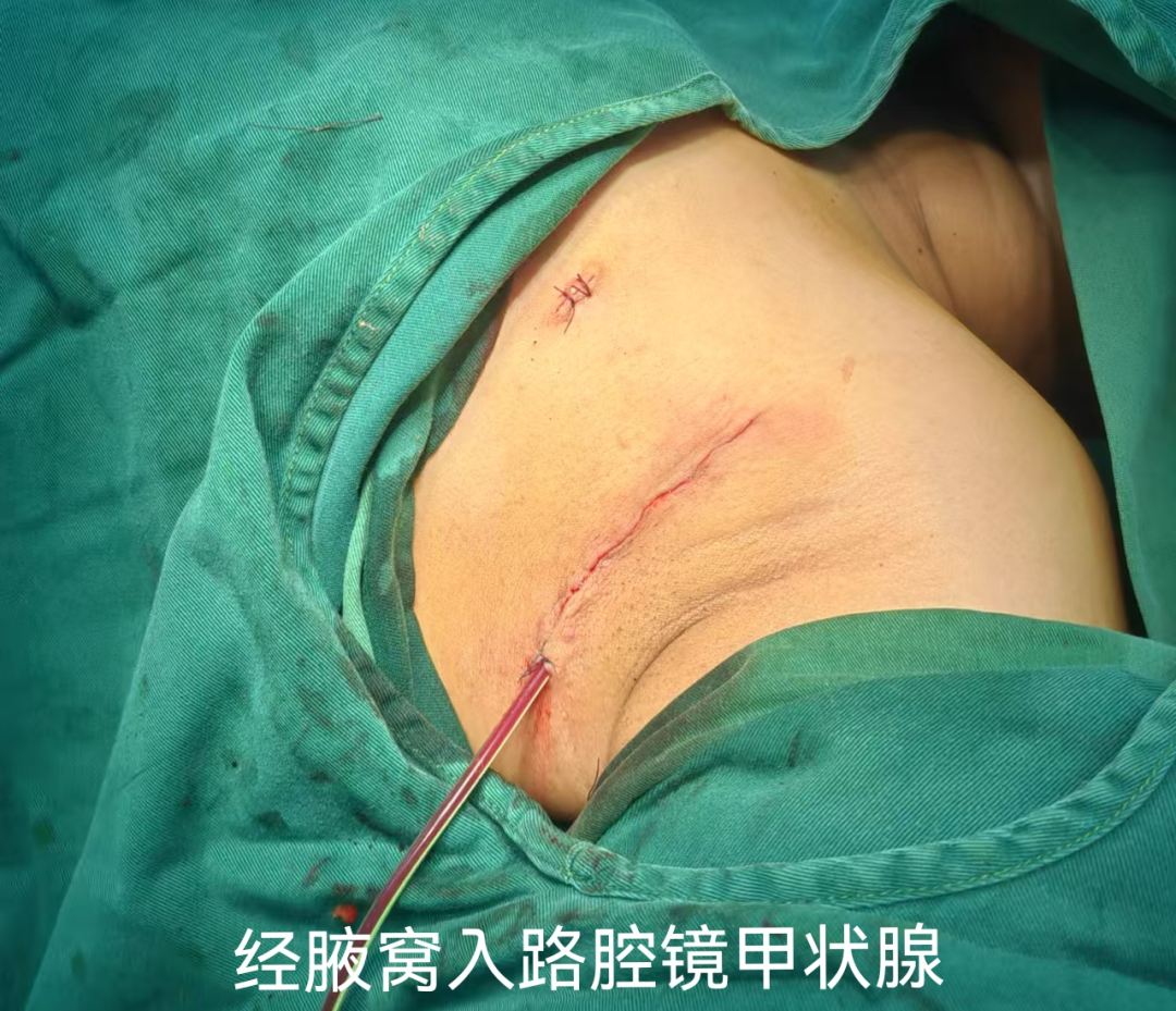 青年女性患者,对手术效果、术区疤痕要求较高,经评估后综合制定了适合李女士的“经腋窝腔镜甲状腺手术”的常规手术方案。