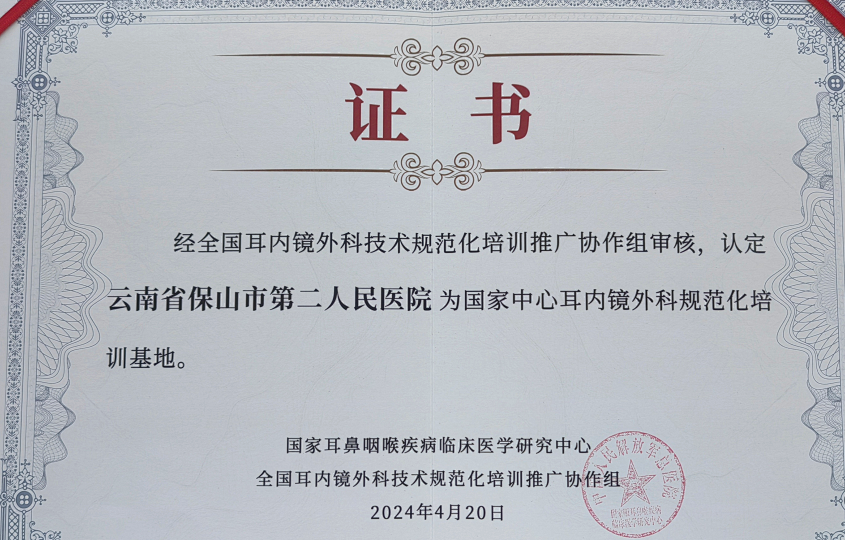 保山市第二人民医院耳鼻咽喉头颈外科是我院的重点临床科室之一,同时也是云南省医院协会耳鼻咽喉专业副主任委员科室,是迄今为止保山市唯一的耳鼻咽喉头颈专业省级临床重点专科,2019年10月成为国家耳鼻喉研究中心(北京解放军总医院301)网络成员单位,2023年2月入选成为首批全国鼻咽喉早癌筛查联盟单位,同时成立鼻咽喉早癌筛查门诊,2024年4月20日获批成为国家中心耳内镜外科规范化培训基地,2024年3月率先开展保山市首例人工耳蜗植入术,是集医疗、教学、科研为一体的现代化临床科室,多年来在耳、鼻、咽喉、头颈外科及变态反应研究等领域在本市保持领先地位。