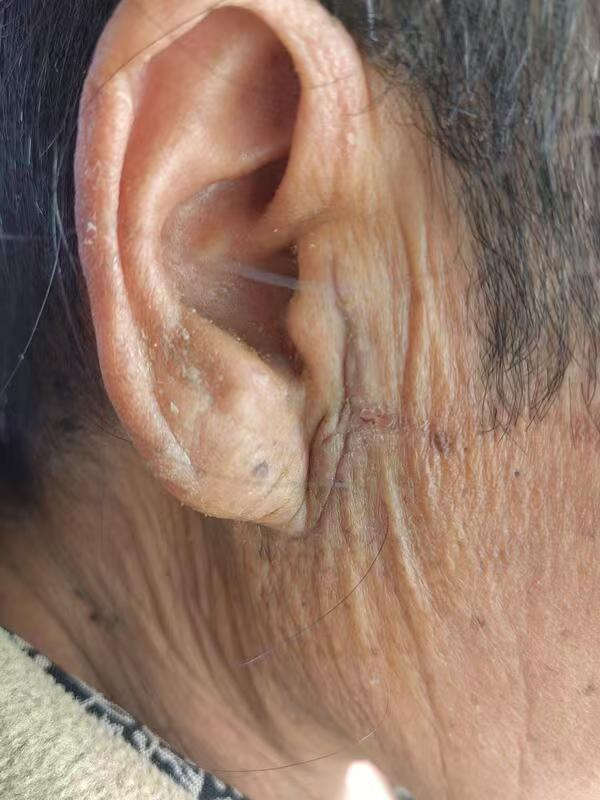 术后,患者恢复顺利,伤口愈合良好,无面神经损伤相关并发症。经过一段时间的恢复,原本担心会留下难看疤痕的张某惊喜地发现,颈部皮肤光洁如初,仅在耳周隐蔽处留有细微痕迹。