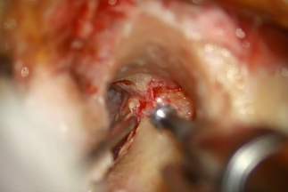 手术过程中,做耳内切口,行上鼓室入路显微镜下快速磨骨打开整个上鼓室,向后磨开鼓窦入口,耳内镜下手术视野清晰的清除病变,在这些先进设备支持下,手术进展非常顺利。