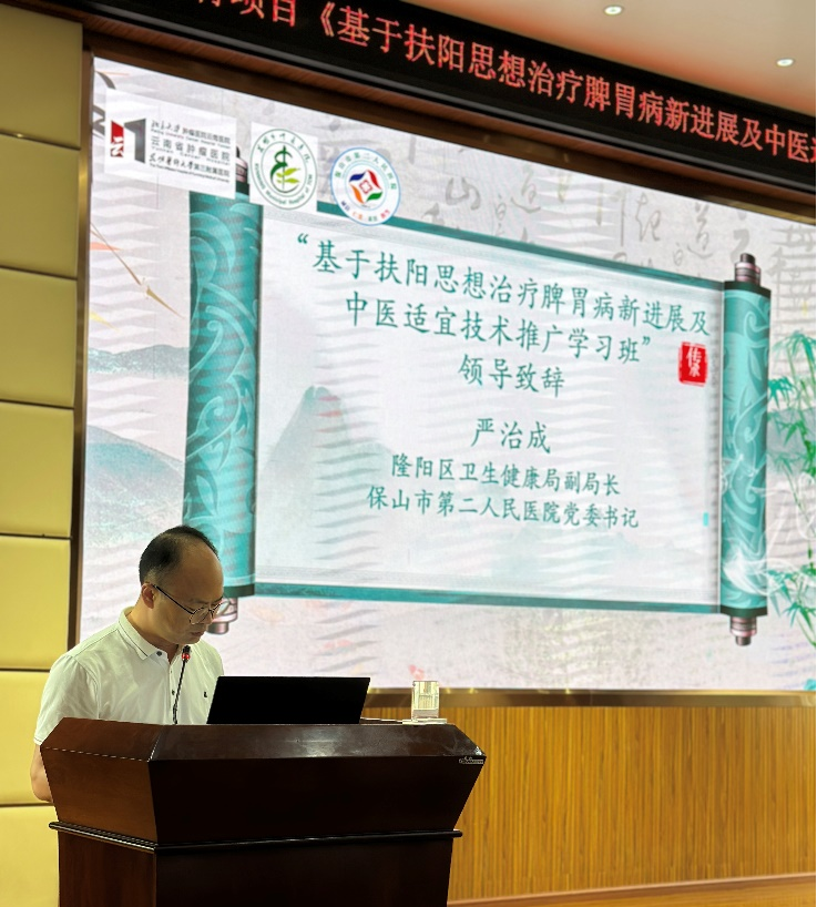 他表示,近年来,扶阳思想在脾胃病治疗中的应用不断取得新突破,中医适宜技术以其简、便、验、廉的优势,在基层医疗中发挥着重要作用。但在脾胃病中医药防治技术的推广和应用上,基层医疗机构仍面临诸多挑战。一方面,对扶阳思想在脾胃病治疗中的新理论、新方法的研究和应用还不够深入;另一方面,中医适宜技术在基层的规范化推广存在不足,专业人才匮乏、技术应用不规范等问题制约着中医药特色优势的发挥。希望各位与会同仁珍惜难得的学习机会,深入交流研讨,将所学知识转化为服务患者的实际能力,推动脾胃病中医药防治技术在基层的广泛应用和创新发展。