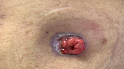 76岁男性患者,“乙状结肠切除+降结肠造瘘术”术后肠造口出现造口皮肤黏膜分离,经过伤口造口专科护理门诊一个月的精心护理,恢复效果明显。