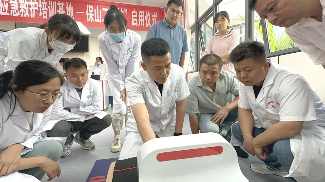 据悉,在市、区两级红十字会及各级领导的关心支持下,隆阳区卫健与红十字会携手合作,共同打造保山二院培训基地,基地建设面积128平方米,配备10台智慧教学一体机,可满足100人同时进行实操训练。依托保山市二院与上海市闵行中心医院的“急诊医学科共建战略合作协议”,2025年已派10余人进修,上海专家长期驻点帮扶,让基地成为培育专业人才的摇篮和普及急救知识的前沿阵地。