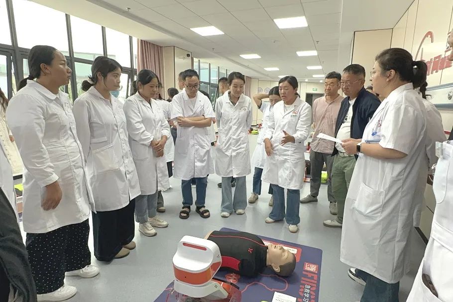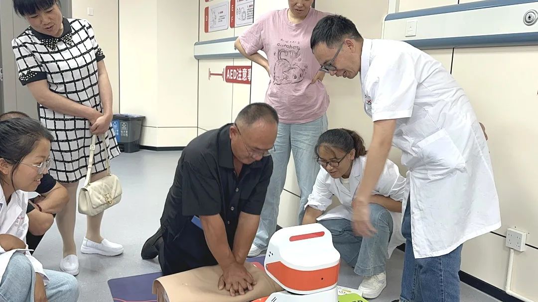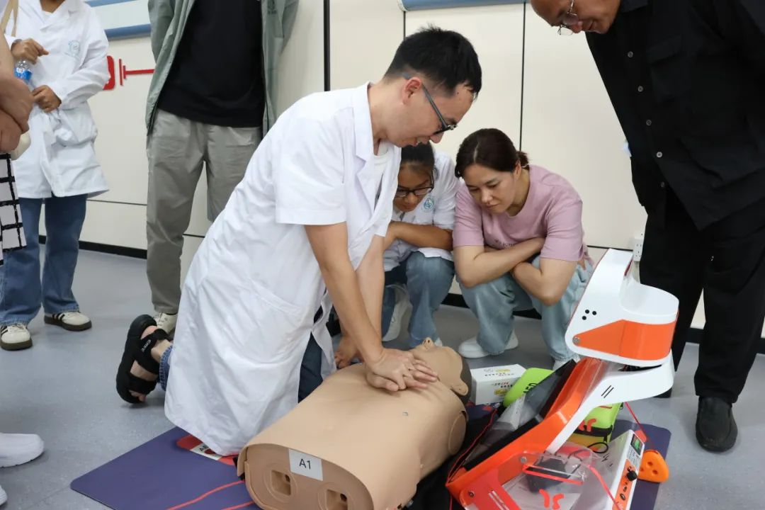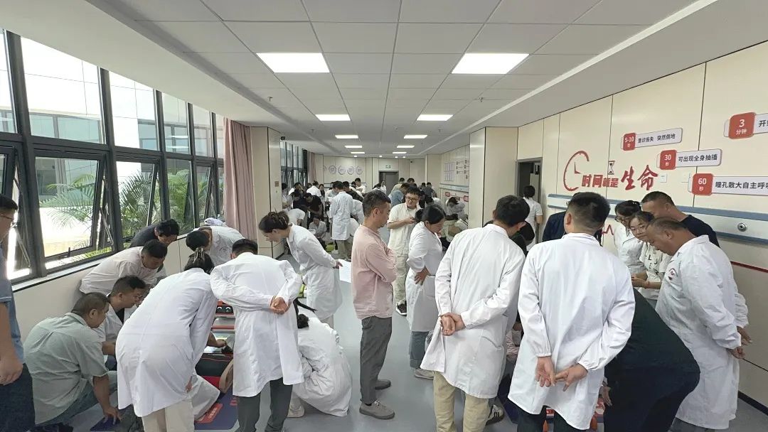 在市、区红十字会指导下,120余名区域急诊急救医护人员现场分组完成心肺复苏(CPR+AED)操作培训、考核。