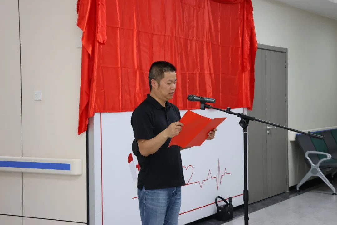 区卫健局局长张国耀讲话。他表示:“红十字应急救护培训基地—保山二院站”的启用,既是落实习近平总书记“推进健康中国建设,把保障人民健康放在优先发展的战略位置”重要指示的具体行动,也是我区应急救护体系建设的大事,更是守护群众生命健康的实事。区卫健局定会全力支持基地的建设与发展,期待以基地启用为新起点,在全区掀起学习应急救护知识的热潮,让“人人学急救、急救为人人”的理念深入人心,共同构筑起坚不可摧的生命安全防线。