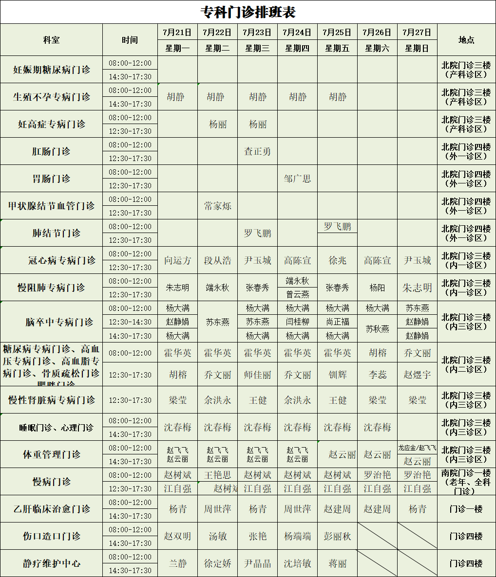 必收藏︱保山市二院新、老院区7月21日—7月27日门诊出诊表
