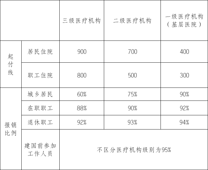 注:起付线指住院需先自付的部分;报销比例指超出起付线报销的比例
