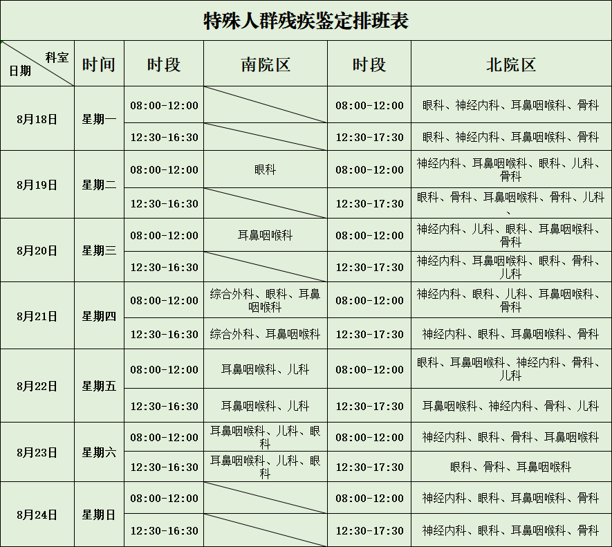 特殊人群残疾鉴定排班表