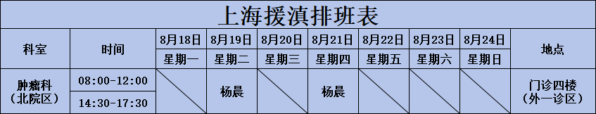 上海援滇专家排班表