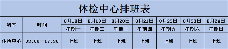 体检中心排班表