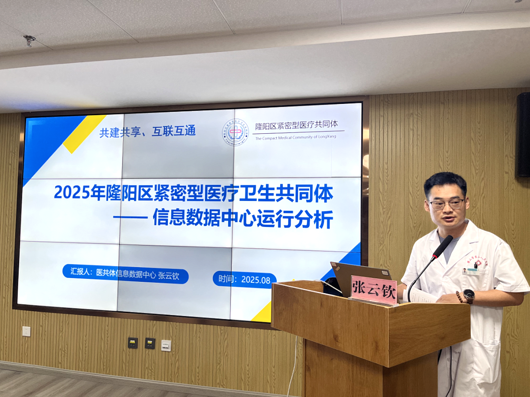 医共体医保管理中心副主任、总院运行质控部副主任宋佳男作隆阳区紧密型医疗卫生共同体2025年城乡居民基本医疗保险总额控制打包付费实施方案一、二进行解读。