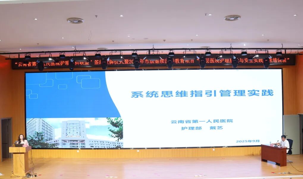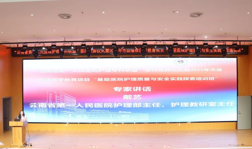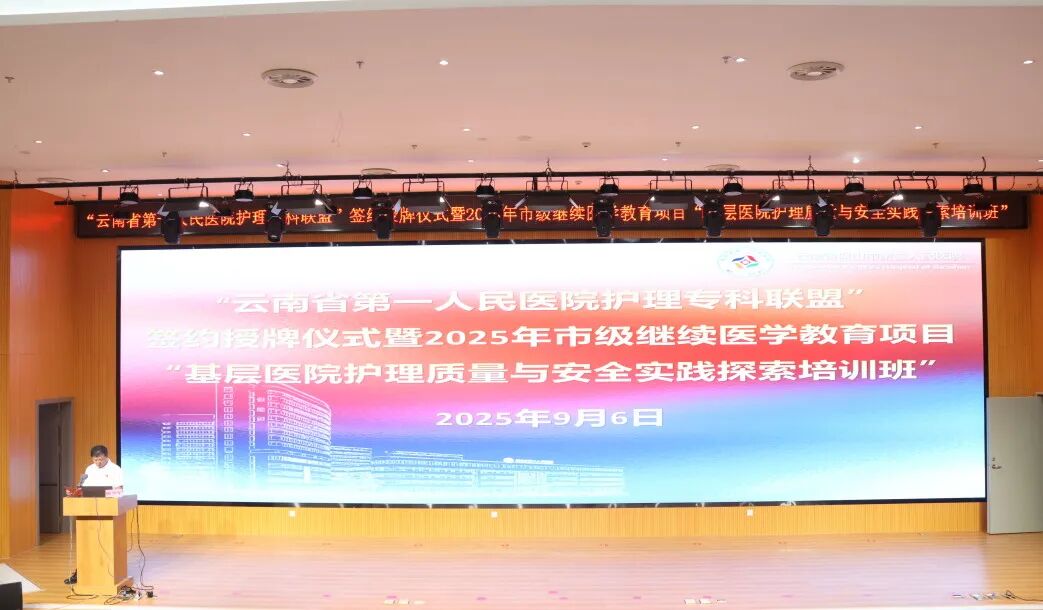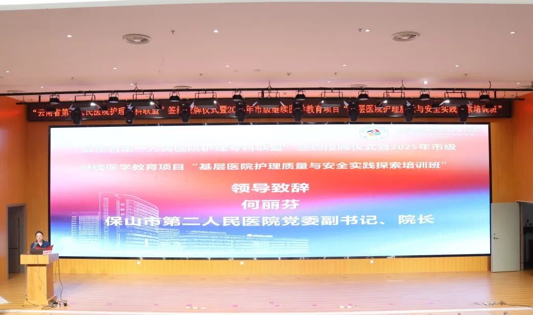 9月6日,“云南省第一人民医院护理专科联盟”签约授牌仪式暨2025年市级继续医学教育项目“基层医院护理质量与安全实践探索培训班”在保山市二院顺利举办。本次培训特邀云南省第一人民医院护理部戴艺主任及团队成员、省市护理质控中心专家、保山中医药高等专科学校专家出席签约仪式并授课。会议由杨少军副院长主持,保山市及周边地区各医疗机构、医共体总院及成员单位300余名护理人员参加。
