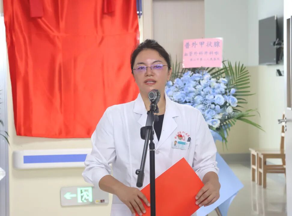 她表示,当前群众对甲状腺结节、下肢血管疾病、烧伤修复等专科医疗服务的需求越来越高,普外甲状腺、血管外科的成立既是“应需而生”,更是医院高质量发展的“必然选择”。她对新科室提出三点期望,一是要始终践行“以患者为中心”的两心文化,把患者需求放在首位,让每一位走进科室的患者都能感受到医疗服务的人文温度与专业力量。二是要精益求精,以技术为核心。大家要不断学习新知识、掌握新技术,持续提升诊疗服务水平,赢得患者与同行的双重认可。三是要加强团结协作,以团队建设为核心。希望大家心往一处想、劲往一处使,形成强大发展合力,加强与各科室的紧密配合,推动学科快速高质量发展。