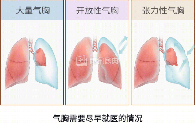 ★特殊类型气胸:包括与月经周期相关的月经性气胸、生育期女性妊娠期出现的妊娠合并气胸、60岁以上人群继发于慢性肺部疾病的老年人自发性气胸,以及由创伤导致的创伤性气胸(常合并血气胸或脓气胸)。