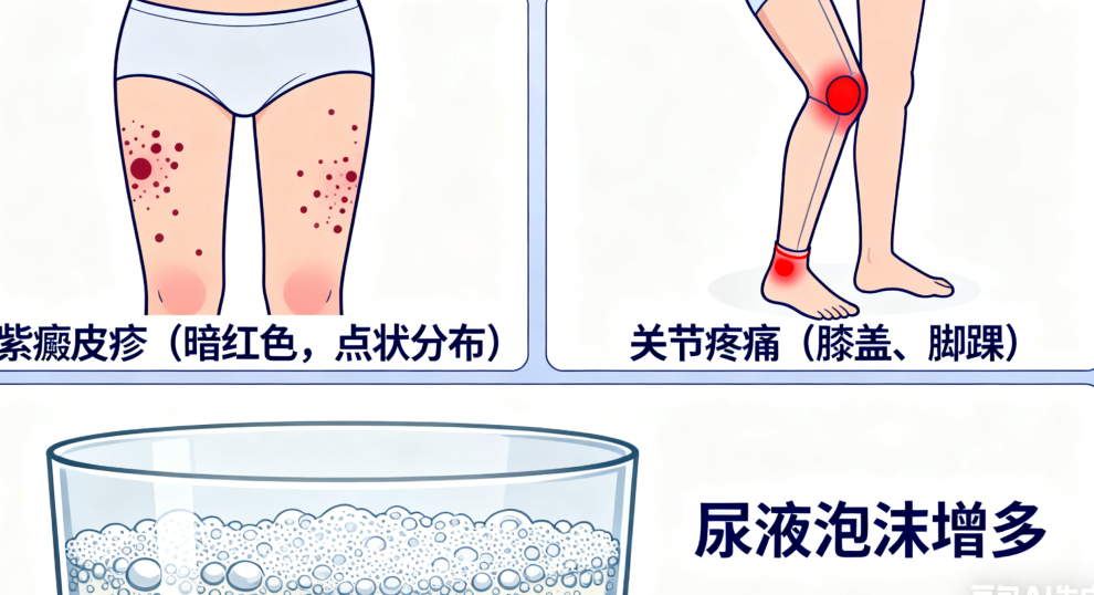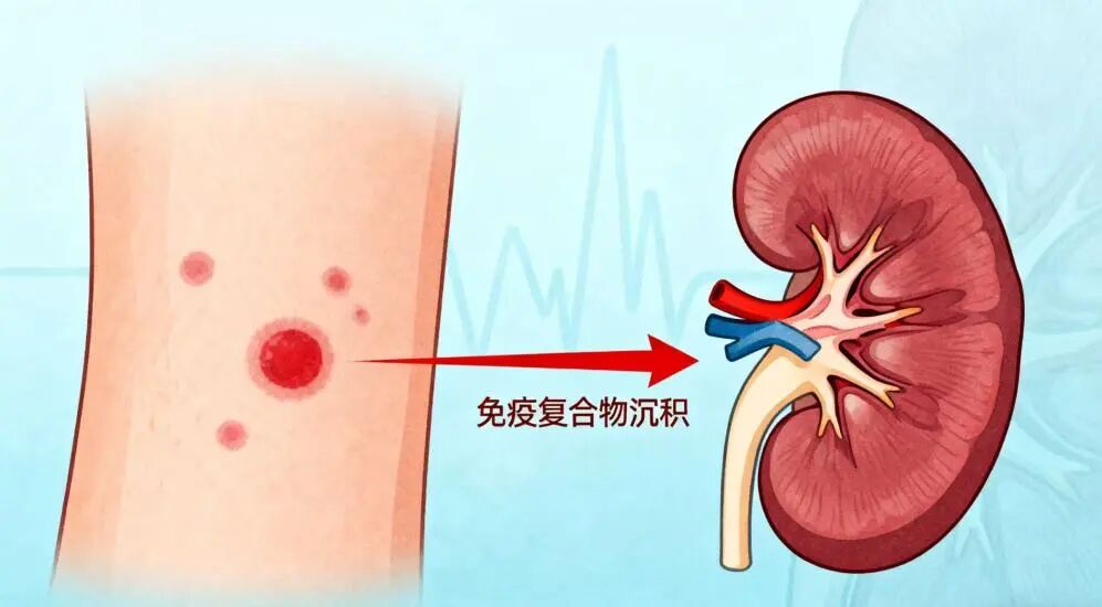 当免疫系统出现“误判”,会产生针对自身的免疫复合物,这些复合物随血液流动,容易沉积在全身小血管壁上——皮肤小血管受累,就出现按压不褪色的紫癜;肾脏肾小球的小血管密集,免疫复合物沉积后会引发炎症,破坏肾小球滤过功能,导致蛋白尿、血尿,甚至肾功能损伤。简单说,皮肤紫癜是“表象”,肾脏损伤才是“潜在风险”。