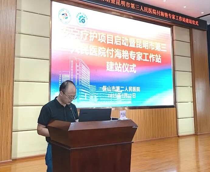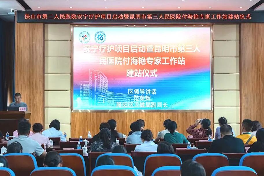 9月12日,“安宁疗护项目启动仪式暨昆明市第三人民医院老年医学科付海艳专家工作站建站仪式”在保山市二院南院区(老)顺利举行。市民政局、区民政局、区卫健局及九隆街道党工委等领导亲临现场指导。周边社区、合作养老院代表,以及医院院领导、各职能部门与临床科室负责人、骨干及分院同仁共同见证了这一重要时刻。活动由保山市二院党委书记严治成主持。