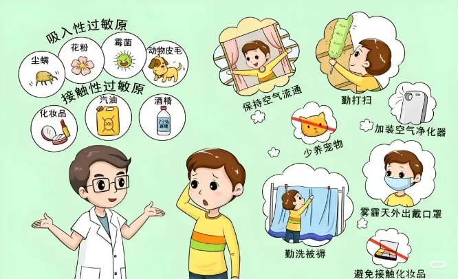 2.起居调摄:避风寒、重保暖,应及时添加衣物,出门戴上口罩,既防花粉又防寒。