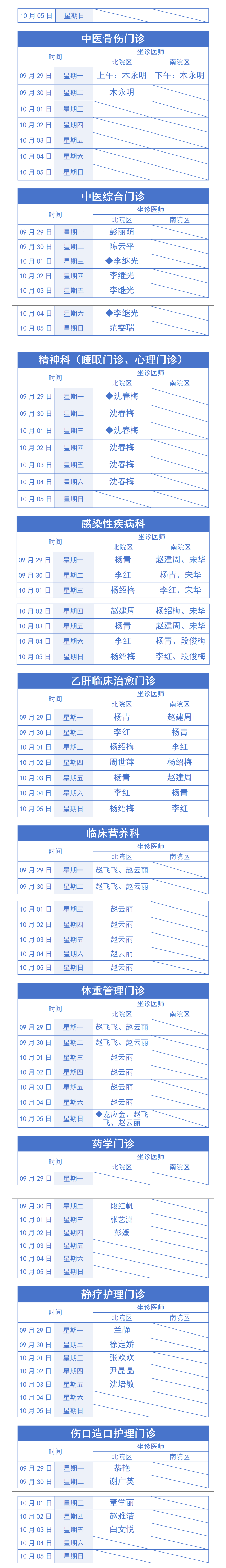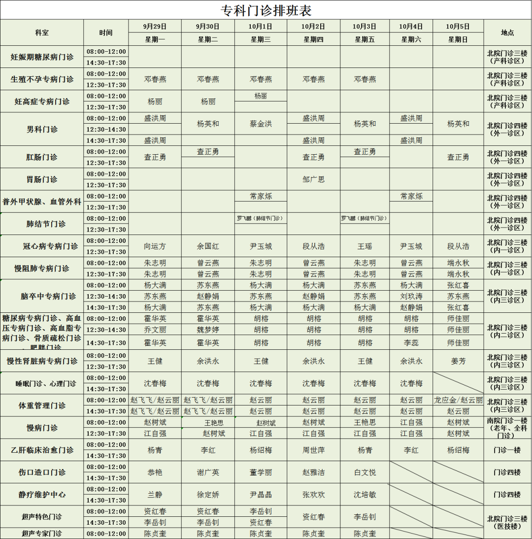 如有变动,以当日出诊为准