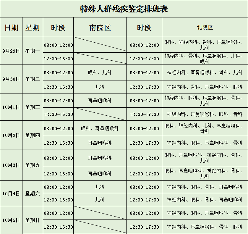 特殊人群残疾鉴定排班表